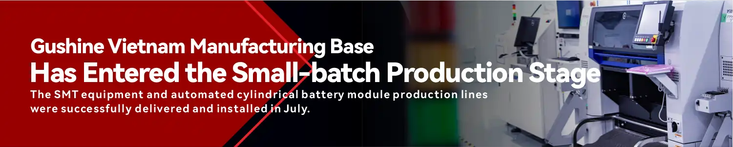 [July 2025, Hai Phong, Vietnam] — Gushine Electronics’ lithium battery manufacturing base in Hai Phong, Vietnam, is progressing steadily. After months of equipment procurement and facility construction, SMT equipment and automated cylindrical battery module production lines were delivered and installed in July. This month, the factory has entered the small-batch production stage.