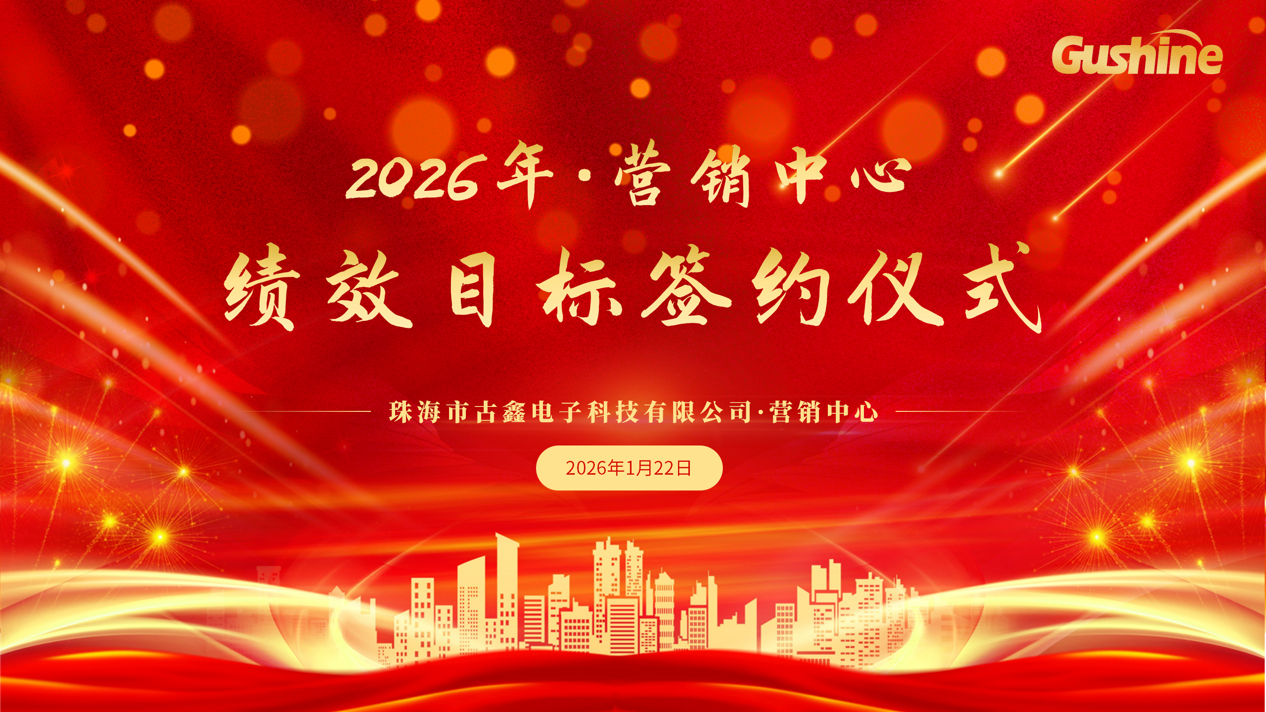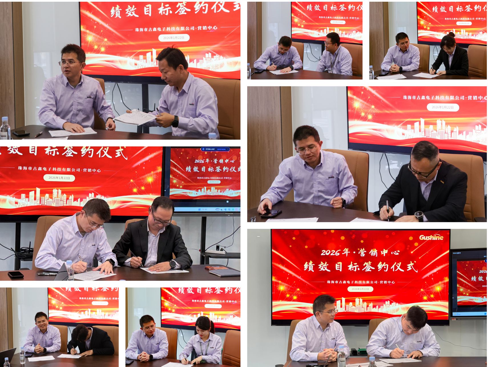2026年1月22日,古鑫电子营销中心在珠海三灶总部举行了年度绩效目标签约仪式。公司管理层和营销中心核心团队共同出席,现场签署了新一年度的绩效目标责任书,明确了全年的关键业绩指标与市场拓展方向。